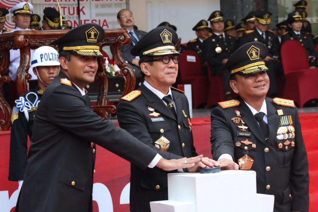 “Bangunlah citra positif dan hiasi kementerian ini dengan berbagai prestasi dan capaian positif,” kata menkumham di lapangan upacara Kemenkumham.